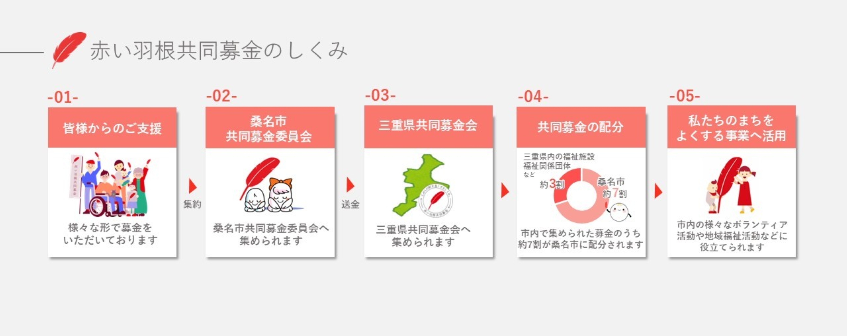 詳しくはこちら ▶ 赤い羽根共同募金とは | 社会福祉法人 桑名市社会福祉協議会 (kuwana-shakyo.com)