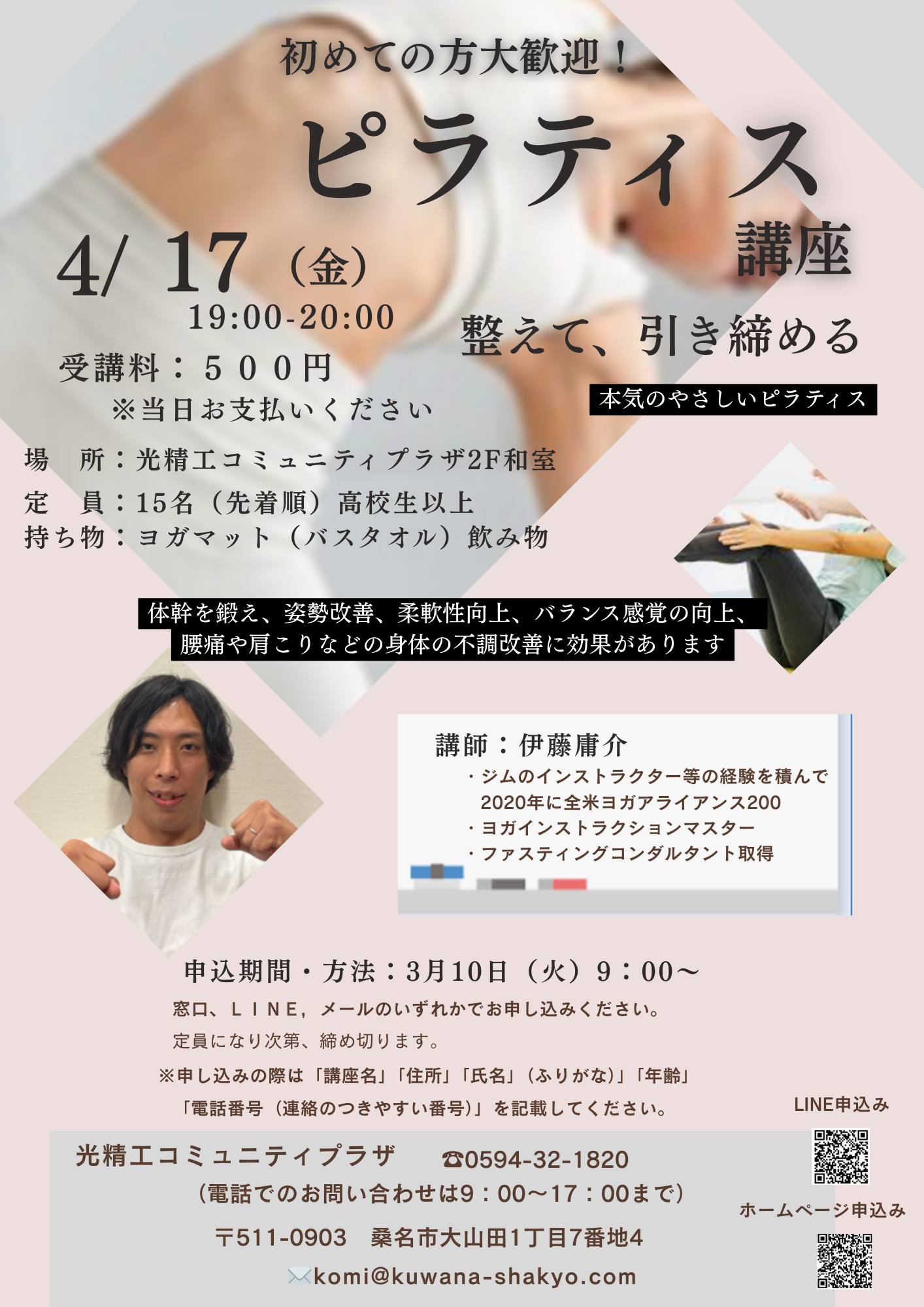 •持ち物 ヨガマット(バスタオル)・飲み物