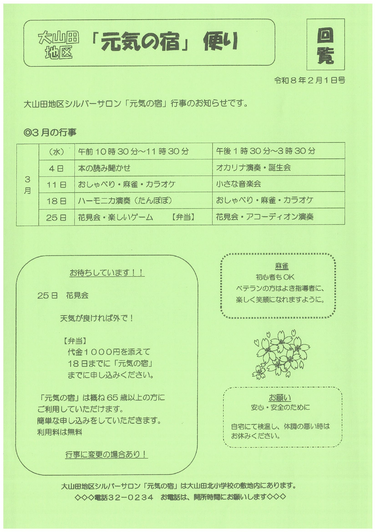 「元気の宿」便り 令和8年3月の行事