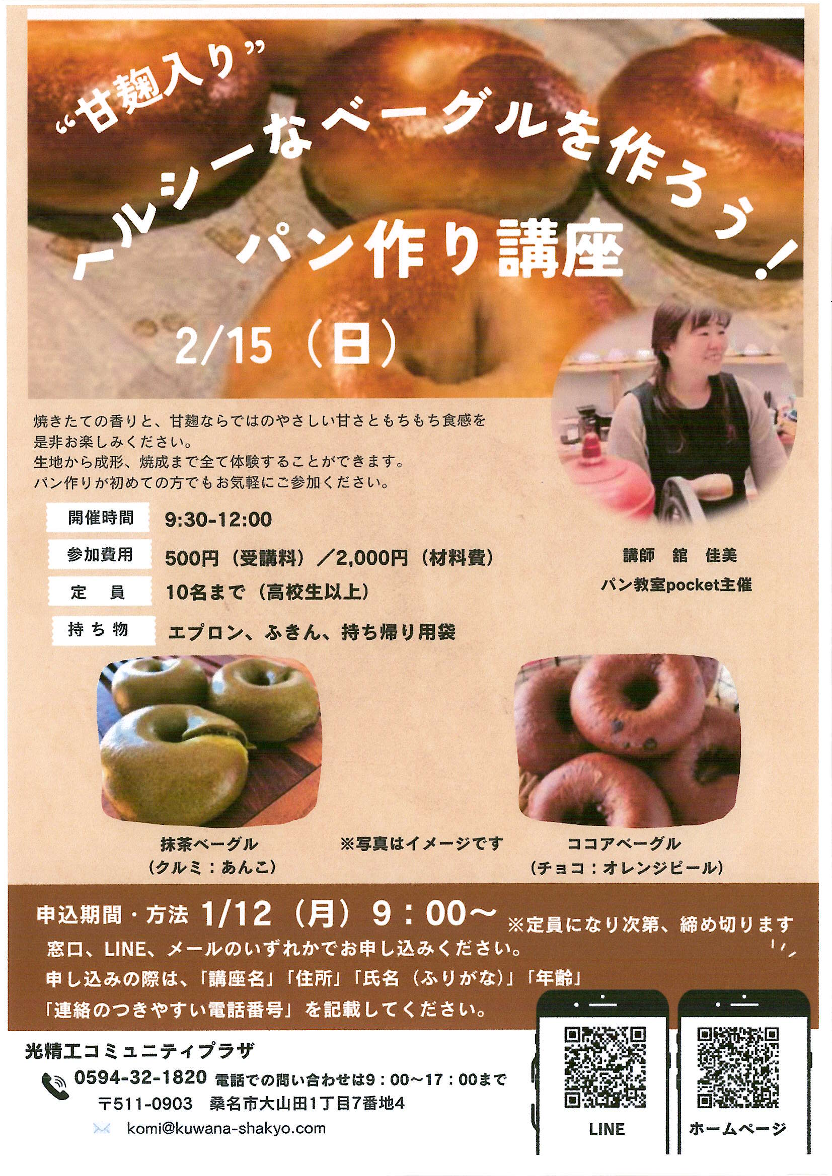 パン作り講座 ヘルシーなベーグルを作ろう! 募集のご案内