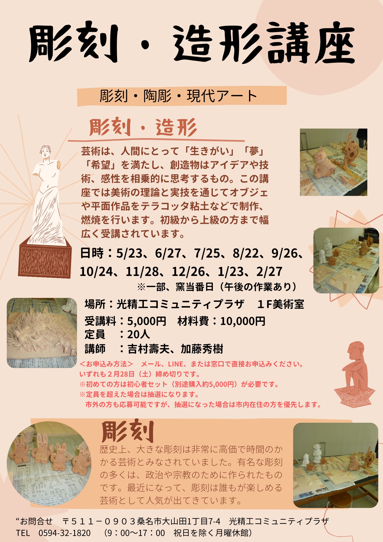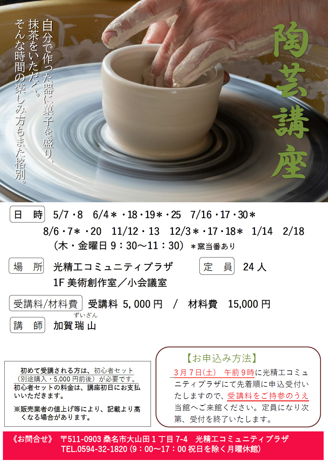 ※陶芸講座は3月7日(土)午前9時より先着順に窓口にて受付いたします。