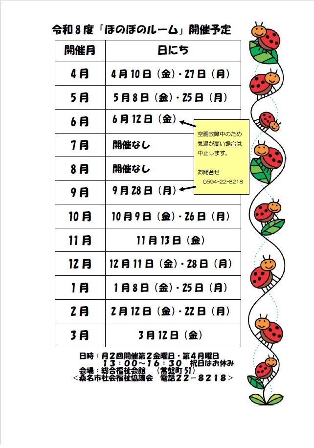 フリースペースほのぼのルームは月に二度、みんなで集まってお話したり自由に活用して頂けます。